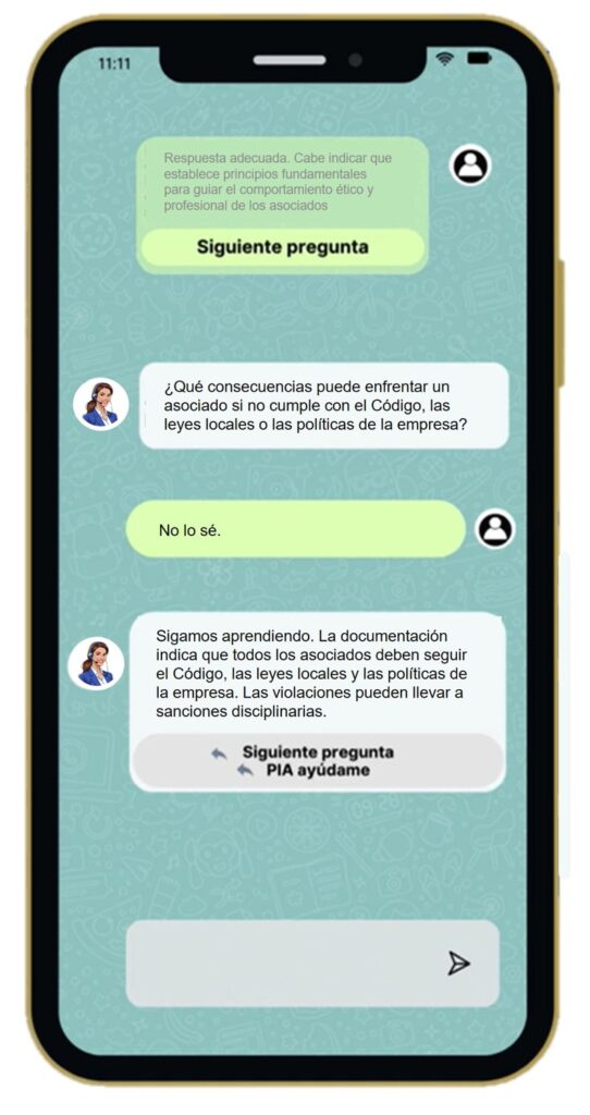 PIAmentor, llega rápidamente a todos tus colaboradores mediante WhatsApp, sin que ellos deban parar sus labores para el entrenamiento.